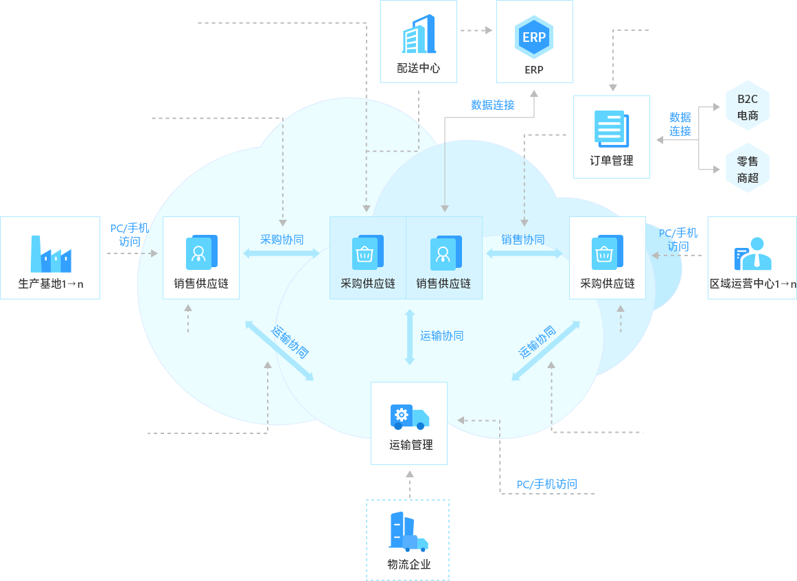 配送中心采购与销售生态协同应用拓扑图