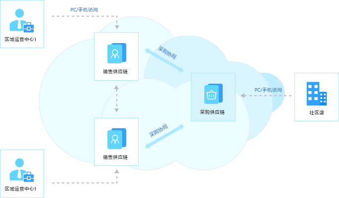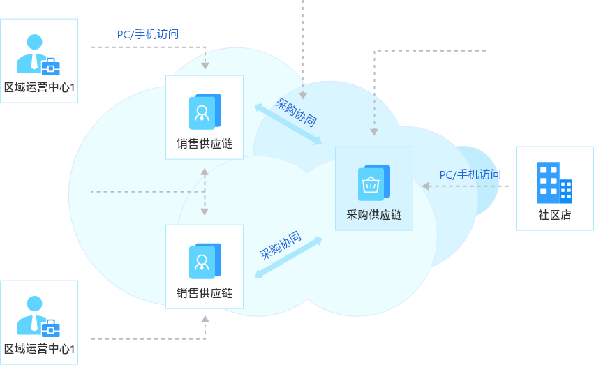 社区店采购生态协同应用拓扑图